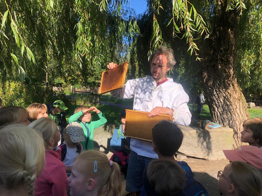 Dort haben wir eine kleine Rallye veranstaltet, die Tiere beobachtet und gemeinsam gespielt. Wir haben viel Neues über die Bienen während eines Vortrages von Martjes Papa gehört. Das war spannend!